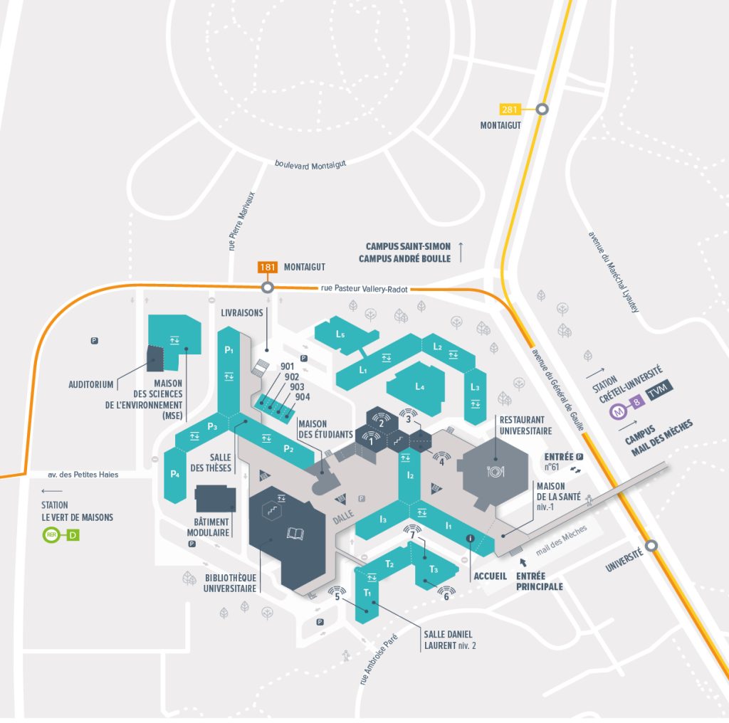 - Métro : ligne 8, arrêt « Créteil-Université »